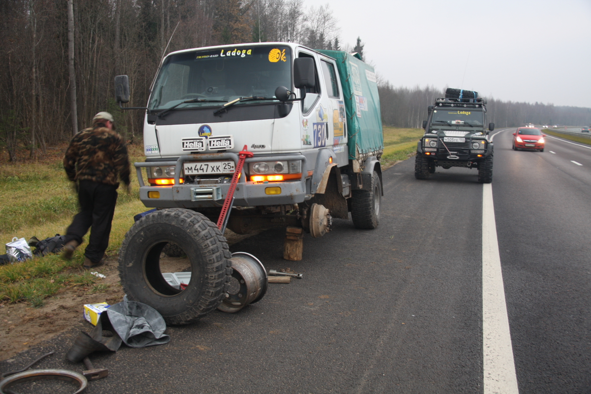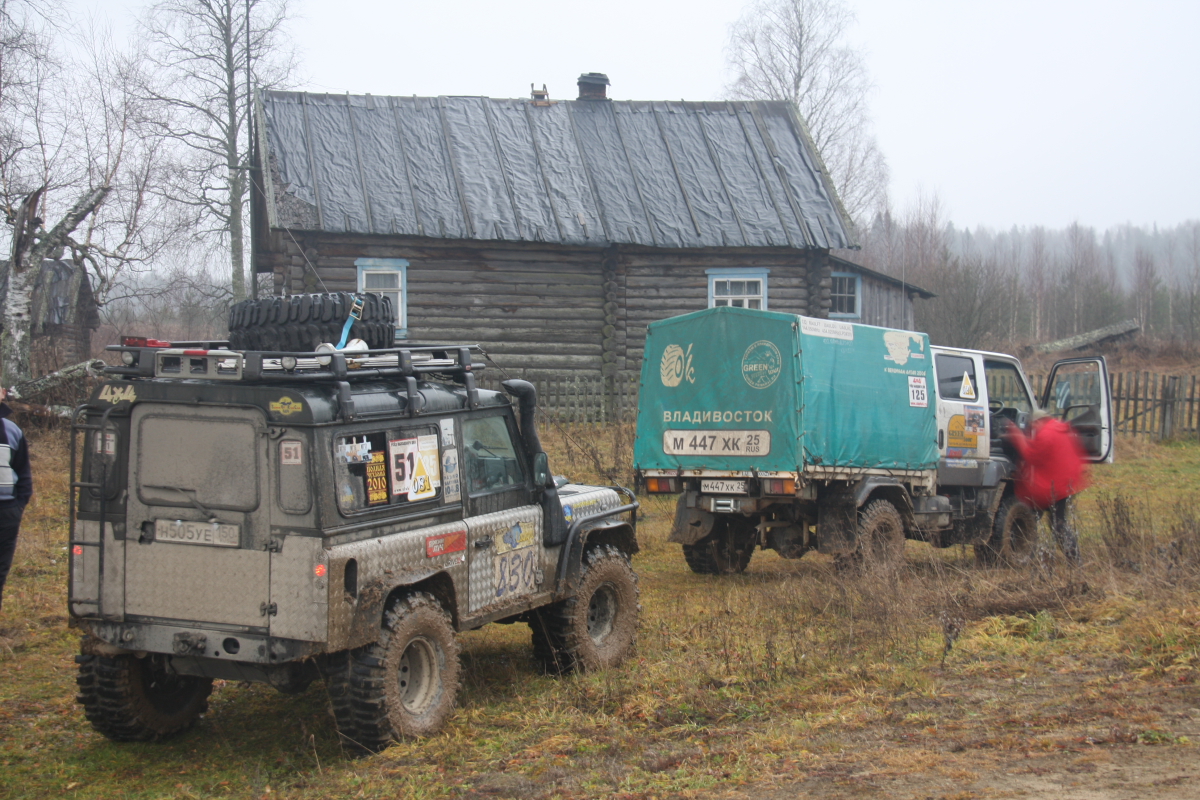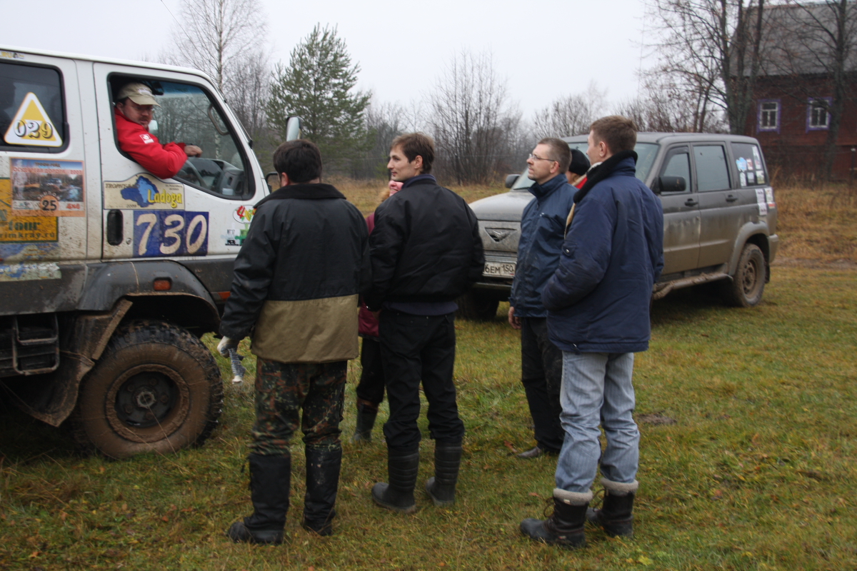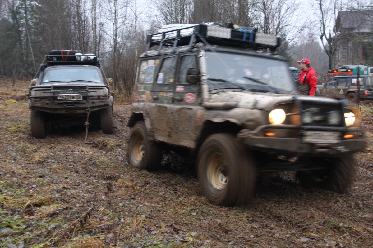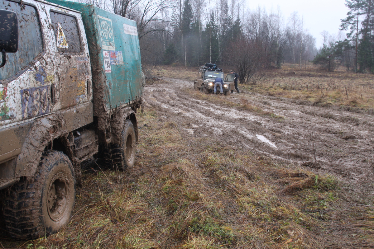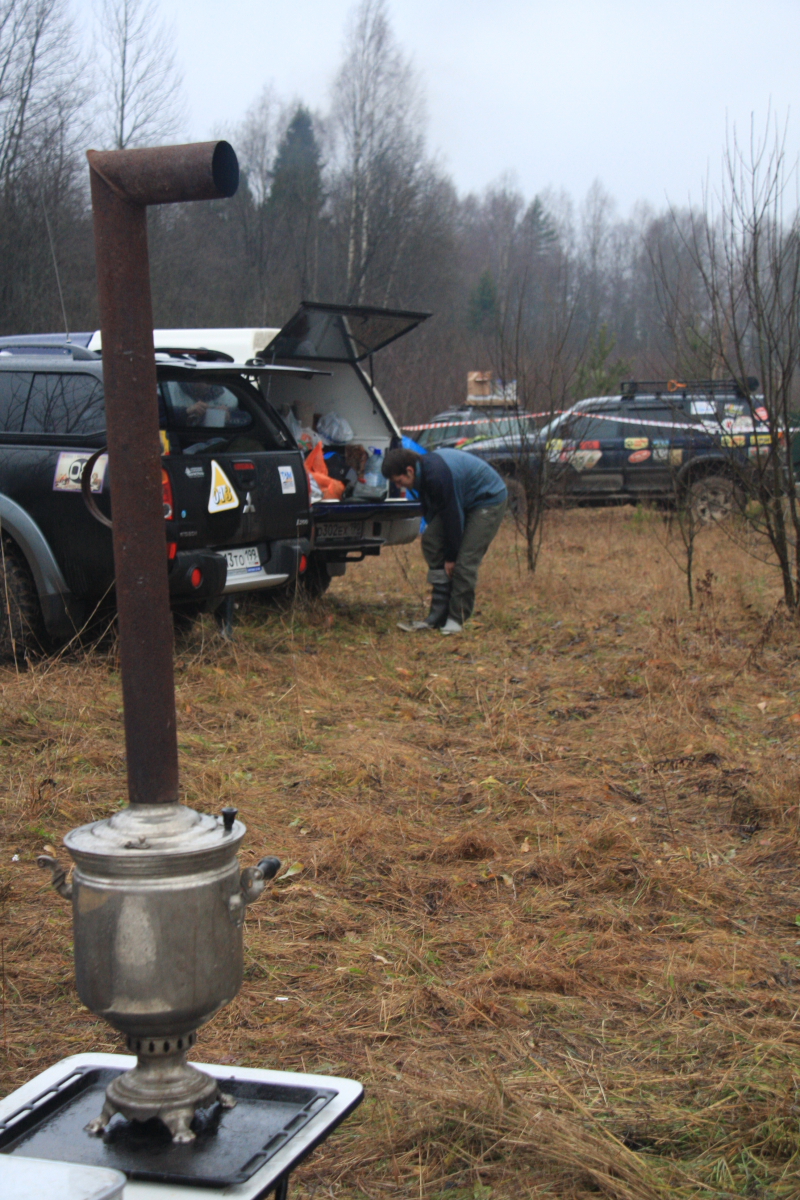 Как ни странно, но весь лагерь забурлил уже в семь утра, завтрак, чай ,кофе, и потянулись команды к палатке оргов получить пароль на день и карту с точками …. Чем так хороша ПЧ? Да тем господа, что это не соревнования! Тут нет - старт !!!! а а а а финиш!!!! Какие мы? Двадцать вторые? Ааа, мать его!… нет ! ,как говорил Черномырдин ( мир праху его!) « Тут вам не здесь!» или « здесь вам не тут». Это «тихое» мирное мероприятие, куда приехали люди с детьми, собаками, был даже один хорек! Поэтому было две группы : «геоджиперы» ( эти как малые дети, дай покопаться и найти тайник, взять стеклышко или бусы и положить чупа чупс..) в этой группе было много машин с детьми, женщины и собаки, те и те по ночам лаяли… Вторая группа «Эгегейцы», которую в свою очередь можно разделить на несколько подгрупп, были суровые ,опытные по самое нЕбалуй важные экипажи, снисходительно посматривая на группы с девочками и животными. У них на машинах колеса как весь «джимик» коих было много в группе «геоджиперы»… они на : « Доброе утро!» снисходительно кивали и всем своим видом показывая, что ты знаешь о добромутре в лесу без лебедки? ! Как позже оказалось это вполне мирные но громкие любители вечернего алкоголя как пружины сжимались в «Матрице» (любимое слово оргов), работа, работа ,жена, работа дети, мама жены, автосервис, работа, жена, автосервис , работа, другая женщина , работа, налоговая, жена, мама жены, дети…вот и накопилось… Был и второй вид «джипер спокойникус» к ним я бы отнес нашу команду 4х4 Трек, мы решили без фанатизма проехать в свое удовольствие в день пару интересных точек…. Была боевая « котлета», перевернулась в первый день и уехала домой на эвакуаторе… Команда на Тойотах как локомотив, носились по трекам , ребятам было явно скучно на 35 и порталах…Были стойкие Пикапы ( эти появлялись в лагере ночью..) Много кого было, о них позже… Трассы в свою очередь имели разный цвет, желтый- умеренный , красный-лебедка обязательно вам поможет! И красный пунктир- может вы и доедете сегодня до лагеря… Погода внесла свои коррективы ,зеленые стали желтыми а красные почти везде пунктир… дожди! Дожди шли пару недель ,и не переставал почти все дни мероприятия…вообще было весело… Построив план на день мы собрали лагерь и тут оргии предложили нам взять третий экипаж, Патрол из Костромы был один, приехал утром, по регламенту на трассу одна машина выехать не может. Нам повезло ребята из Костромы были нам посланы с выше, как компенсация за те вчерашние три колеса ….. Олег ( нет сомнений что это он должен был принять решение) получив молчаливое одобрение команды, дал добро, он потом говорил ,как то сразу почувствовал что это нам надо! И был прав! Интуиция его не подвела, через пару минут к нам присоединились наши полные тезки из славного города Кострома - Олег и Андрей! Машинка у ребят тоже будь здоров, Патрол коротыш на 35 резине, лебедка, красавец!, опыта у людей чувствовалось выше крыши ! и как люди ,это отличные ребята, с которыми с первых минут было легко и непринужденно общаться! И как после оказалось надежные и добрые люди.( ну мне так хочется думать !) Только у них Андрей был за рулем ,а у нас на японском пепелаце Олег. И еще ! у нас был Рамис! Он правда единственный из нас пятерых курил ( но мы эту привычку искореним!) и быть может ночью даже играл в карты, но ! но ! он всегда улыбался! Будь то замена колеса 