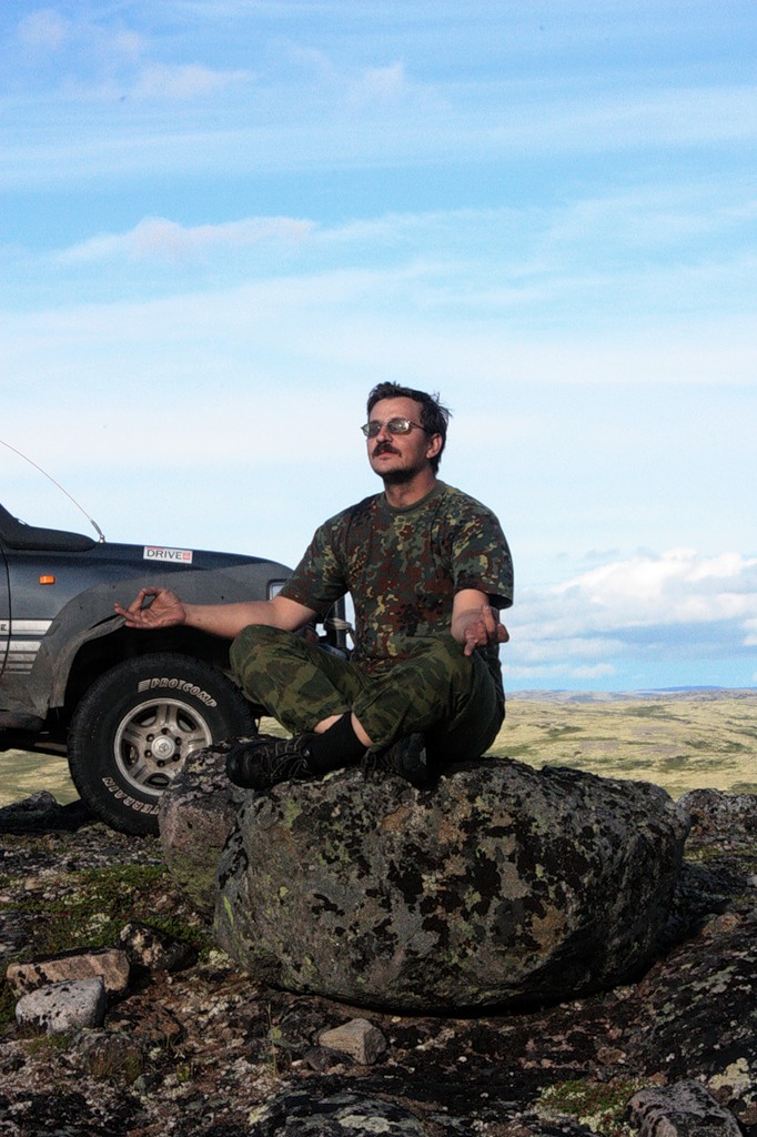 Короче, вечерело. Заправились в Заполярном. И поехали искать места, которые нам подсказали москвичи. Въехали еще на какой-то полигон. В ночи подъехали к речке. Слава богу, что хватило ума не штурмовать ее в темноте вброд. Разбили лагерь.