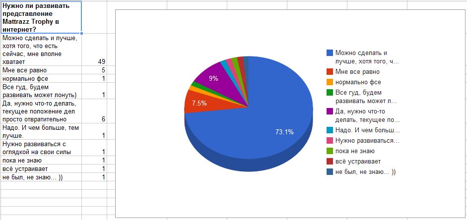 Этот вывод можно сделать потому, что подавляющему большинству, почти три четверти ответивших, вполне достаточно для получения и обмена информацией того, что есть на сайте и на форуме. Не смотря на не работающую фотогалерею и прочие отсутствующие интернет фенечки. Именно достаточно, а не все равно - тот, кому это все равно честно написал об этом и таких людей не много. Но, может быть среди тех, кто ответил "положение дел отвратительно, надо что-то делать" найдутся неравнодушные люди и помогут сделать ресурсы МТ лучше - всегда вельком, мы готовы поработать вместе.