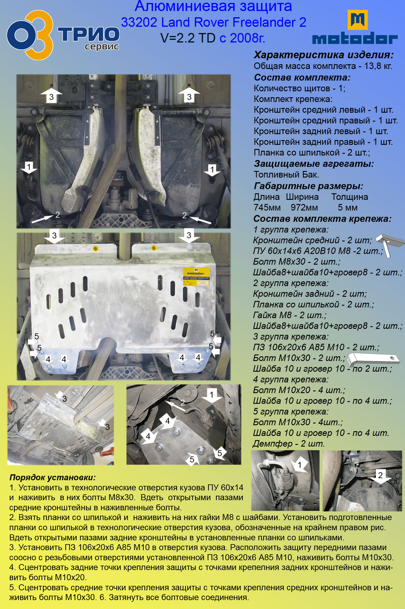 Защита топливного бака из алюминия, толщина 6мм. - 15000р.