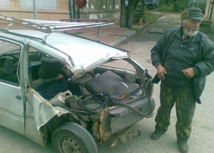 Из рассказа очевидца. "Давеча шел в магазин и увидел такое чудо. Оно остановилось, оттуда вывалился дедушка в полупьяном состоянии бомжеватого типа и спросил, правильно ли он едет в Краснодар. Это было жуткое зрелище, внутри стоял обыкновенный газовый баллон и шланг вел куда-то в двигатель. Я спросил: он что, на газу? На что получил очень четкий ответ: ну а хули! В общем он завелся и поехал... СЧАСТЛИВОГО ПУТИ, ДЕДУШКА!"