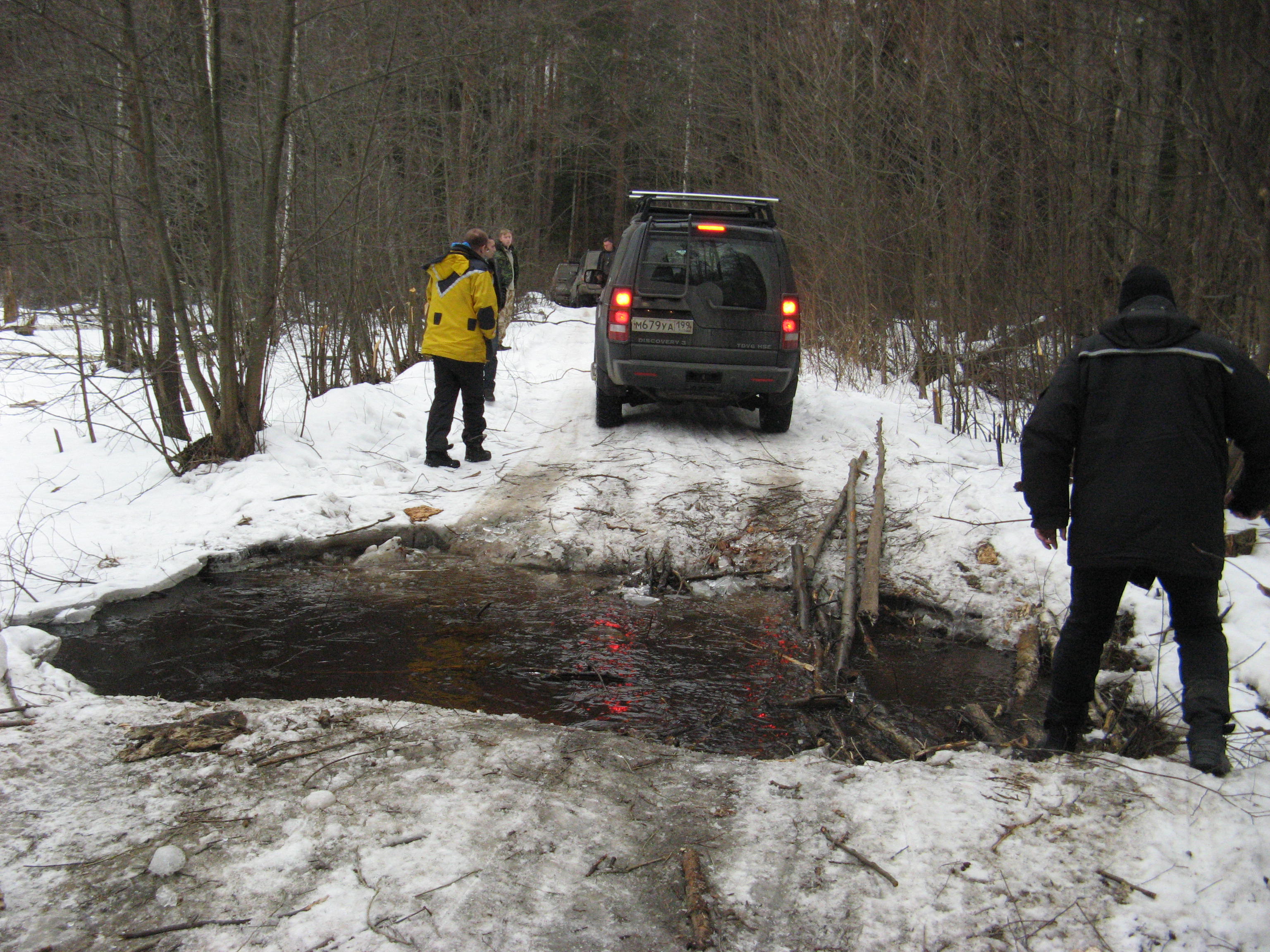 как потом выяснилось мы проскочили поворот с трассы и уехали по свежим следам в лес на пару километров, из-за чего и припоздали. Вообще-то там был бродик и могли засесть. Хорошо, что у Тьерри взял рацию, а то могли вообще пролететь с мт#27.