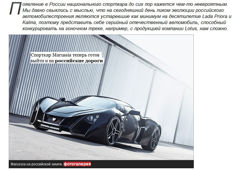 Могу пояснить. Фоменко криком кричал: ищу квалифицированных инженеров, бабки буду платить. НЕТУ! Реально нету. Он кучу интервью на эту тему дал. Вся страна у нас в экономистах и бухгалтерах, а талантливых грамотных инженеров, которые способны были бы работать на мировом уровне - нету. Вот и получается, что русская задумка реализуется за границей, а ориентирована на европейский рынок. В Марусе считают, в России в силу менталитета (если на логотипе не Ferrari написано - это не круто) спроса на машину не будет.
