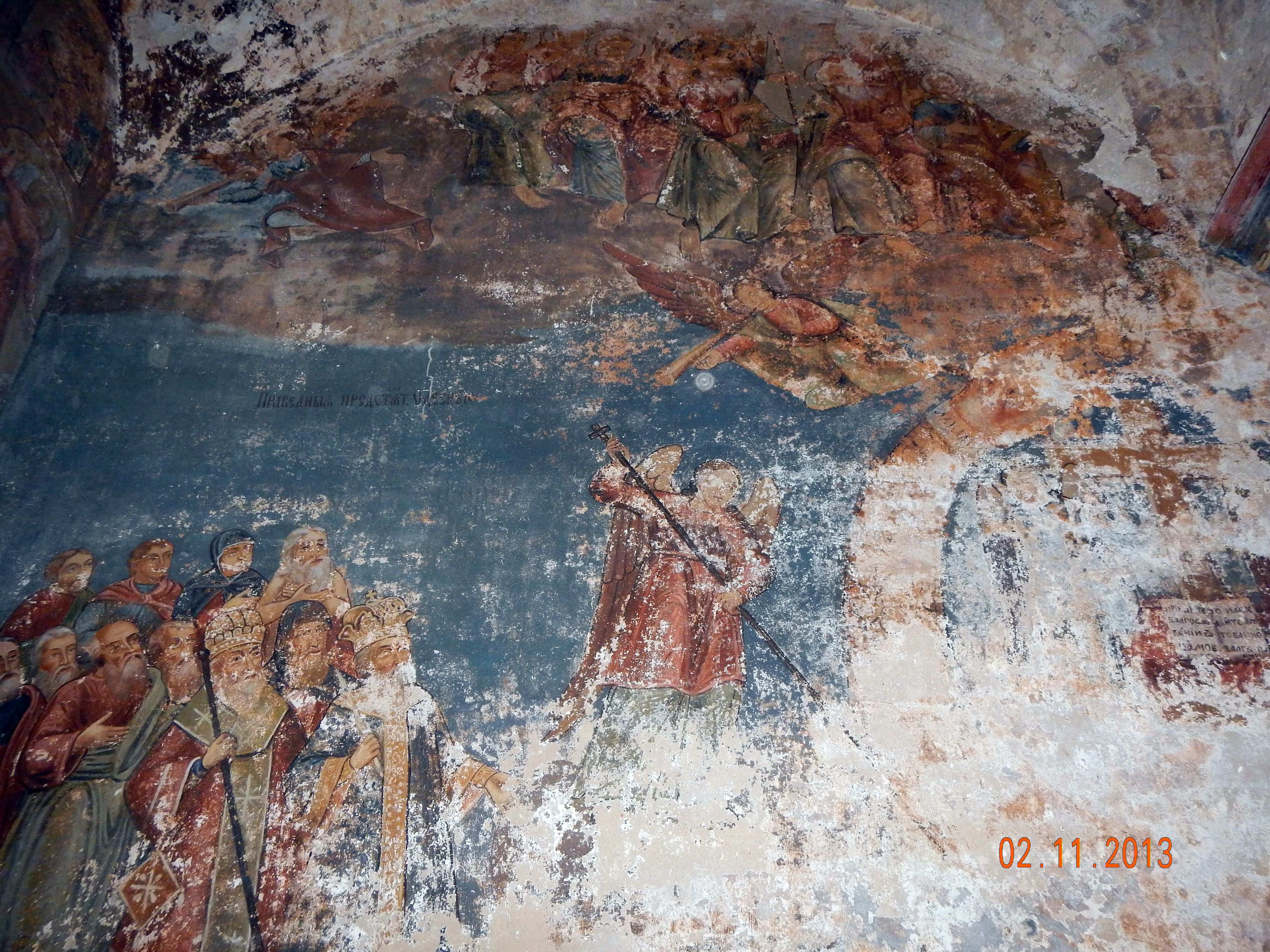 Комментарий к файлу: Практически уничтоженная фреска на наружной стене левой церкви.