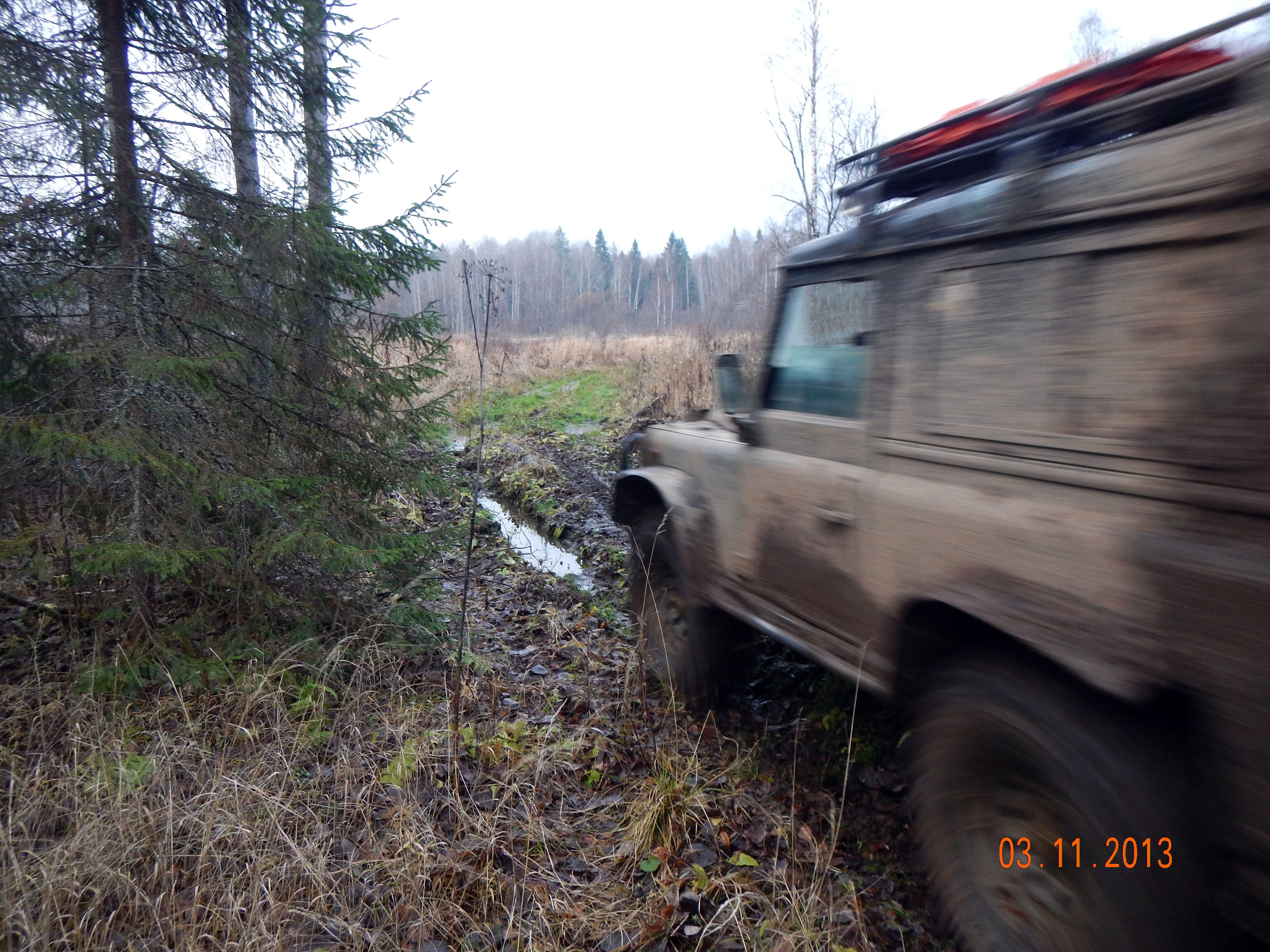 Комментарий к файлу: Дорогу полностью размыло. Объезжаем по болоту.