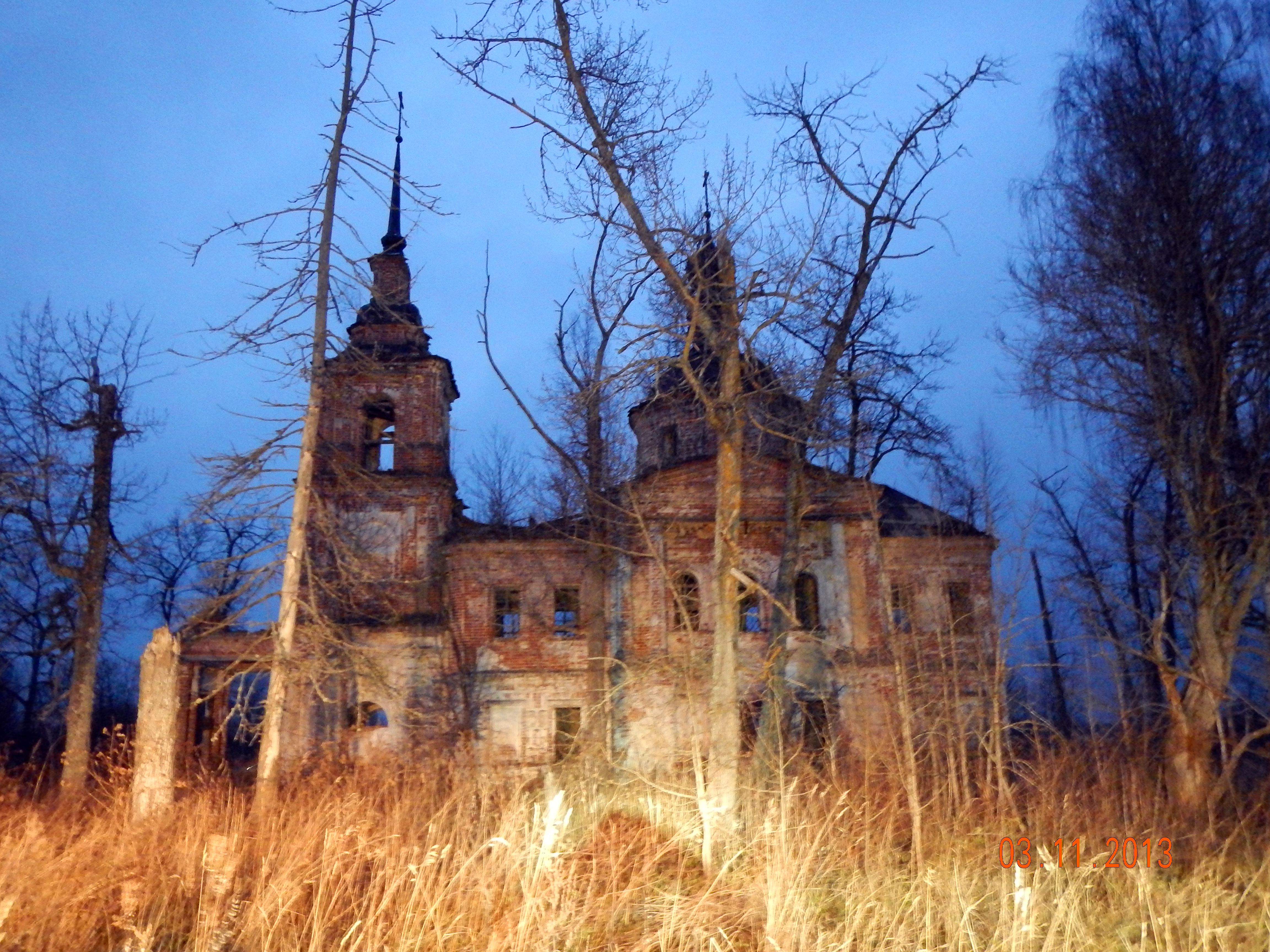 Комментарий к файлу: Разрушенная церковь во вполне себе живом селе.